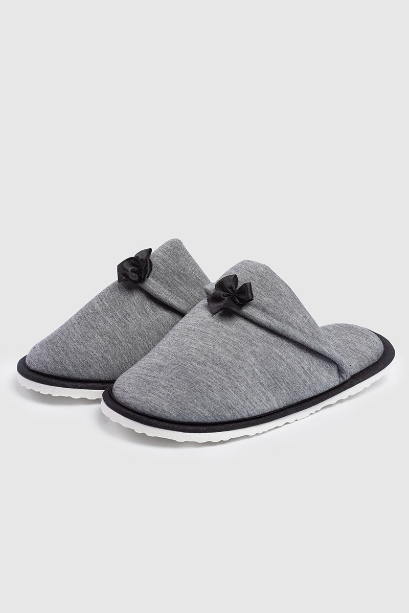 Pantufa confeccionada em tecido 100% poliéster na cor mescla e solado feito em EVA.